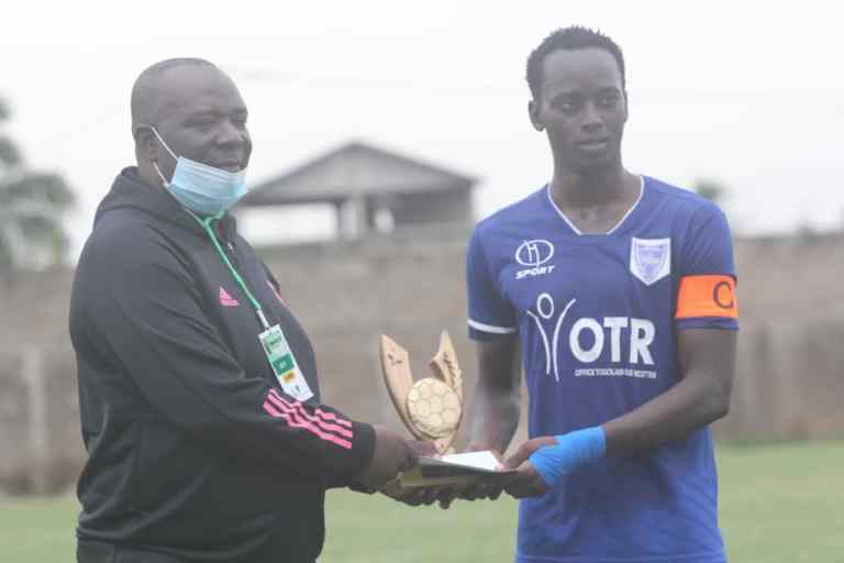 L’attaquant de l’AS OTR a reçu son trophée des mains de Mr GNENI SEBABI, actuel directeur technique national de la Fédération Togolaise de Football. Le trophée lui a été remis à la mi-temps de la rencontre qui opposait son club AS OTR à l’Entente 2 à Ablogamé en présence de M. WIYAO MAMAH, Secrétaire Général de l’AJFT, Association des Joueurs de Football du Togo.