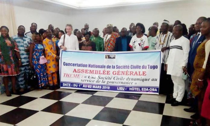 (IMPARTIAL ACTU)- La Concertation Nationale de la Société Civile du Togo (CNSC-Togo), tient du 1er au 2 mars 2019, son Assemblée Générale Ordinaire à l’hôtel Eda Oba de Lomé. Les travaux de cette rencontre de deux jours, ont été ouverts vendredi 1er mars 2019, et vont permettre de procéder au renouvellement des instances dirigeantes, de l’institution.