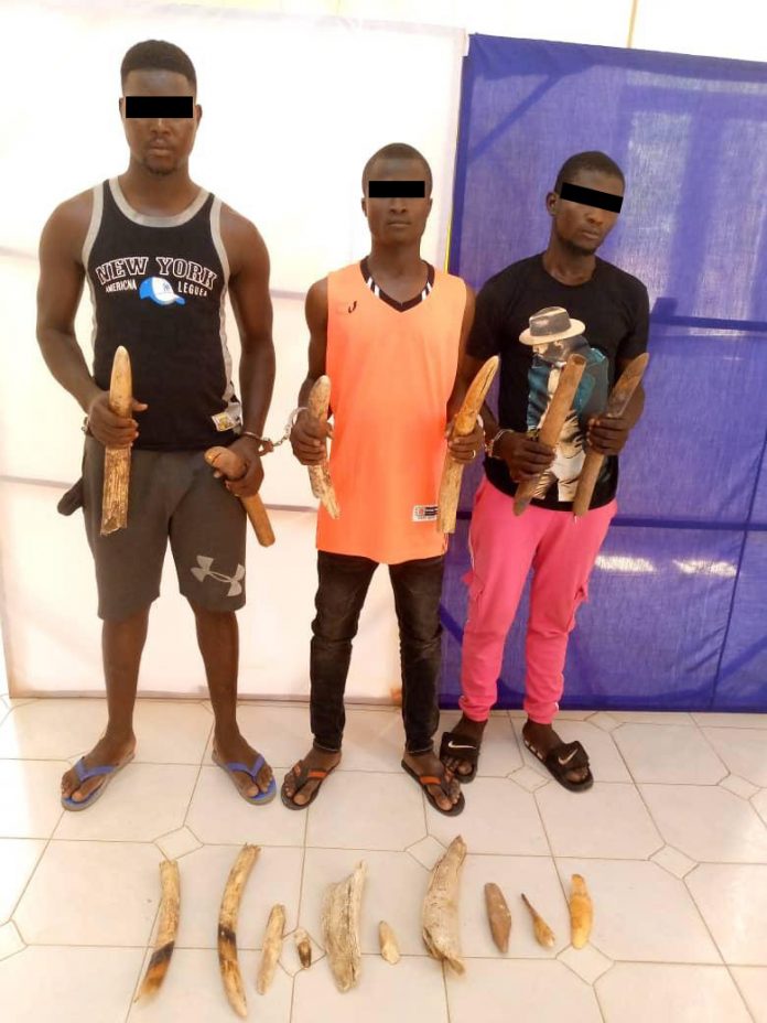 (IMPARTIAL ACTU)- Trois présumés trafiquants d’ivoire arrêtés en flagrant délit de détention, de circulation et de la commercialisation illégale de huit défenses d’éléphants, le 28 mai 2021 à Kara, ont été déférés à la prison civile de la même ville, le 31 mai 2021. L’arrestation a été possible grâce aux agents de la Brigade de Recherche et d’Investigation (BRI) et du Ministère de l’Environnement et des Ressources Forestières (MERF) en collaboration avec EAGLE-Togo.