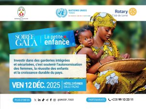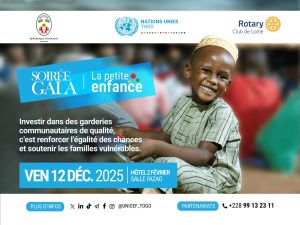 (IMPARTIAL ACTU)- À Lomé, la mobilisation en faveur de la petite enfance s’apprête à franchir un nouveau cap. Le 12 décembre 2025, la salle Fazao de l’Hôtel 2 Février accueillera un gala de bienfaisance inédit, orchestré par le Gouvernement togolais en partenariat avec le Système des Nations Unies et le Rotary Club. Objectif : lever les fonds nécessaires à la création de garderies communautaires intégrées au sein des marchés du pays, un projet présenté comme stratégique pour le développement humain.